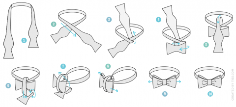 - Pull up your collar and place the bow tie around your neck, define for yourself what the long end of the bow tie will be.